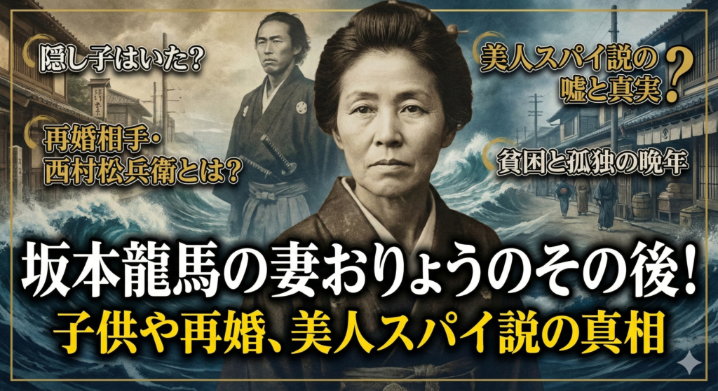 坂本龍馬の妻として知られるおりょうは、龍馬が暗殺された後、どのような人生を送ったのでしょうか。 おりょうと龍馬の間に子供はいたのか、再婚相手は誰なのか、美人だったという噂やスパイ説の真相など、気になる疑問がたくさんあります。 龍馬の死後、... -