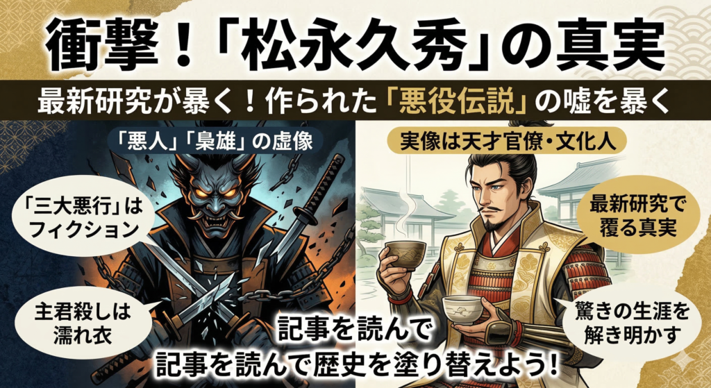 戦国時代、これほどまでに「悪者」として語り継がれた武将は、ほかにいないかもしれません。 「主君殺し」「将軍暗殺」「東大寺焼き討ち」、松永久秀(まつなが ひさひで)といえば、教科書でも「戦国三大梟雄(きょうゆう)」の一人として紹介され、これ... -