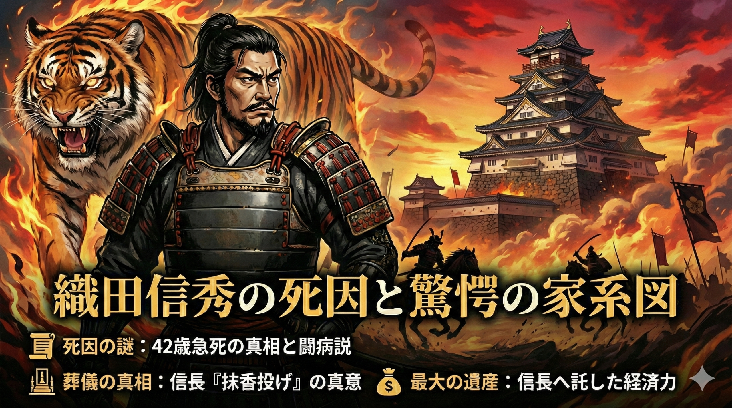 激動の時代を駆け抜けた織田家の嫡流(本家)の男たちは、まるで炎のように太く短く生きる運命にあったのかもしれません。もし信秀があと10年長生きして尾張を完全に平定していれば、信長が家督を継ぐ時期も遅くなり、日本の歴史は全く違うシナリオを描いていたことでしょう。
