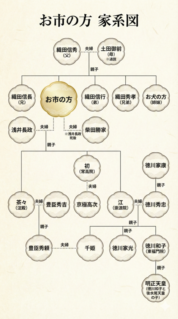 「お市の方」と「織田信長」は、父母を同じくする兄妹でした。