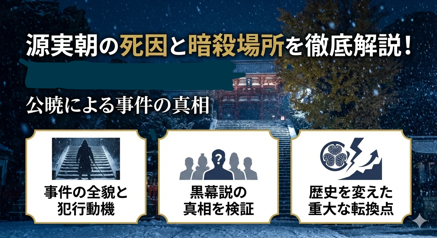 この記事では、源実朝の死因と暗殺された場所について、事件の全貌から黒幕説、そして歴史に与えた影響まで、史実をもとに詳しく解説していきます。