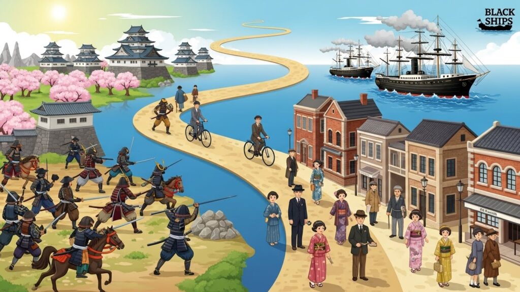 この記事では、歴史の教科書に出てくる「ペリー来航」や「薩長同盟」といった重要キーワードを軸に、滅亡への流れをストーリー形式で紐解いていきます。