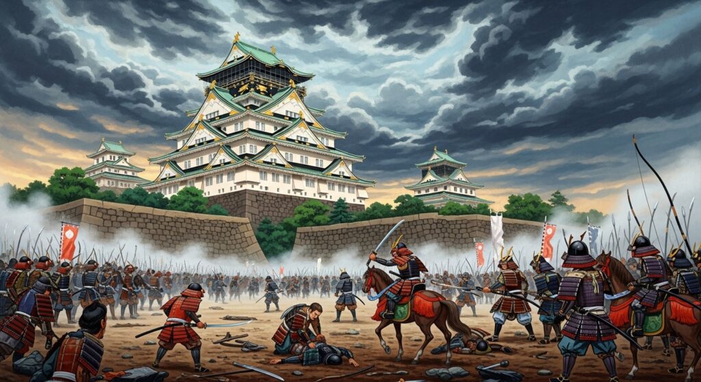 家康は、豊臣氏が将来的に脅威となることを恐れ、様々な口実をつけて豊臣氏を追い詰めました。1614年、方広寺の鐘銘事件をきっかけに、幕府は豊臣氏に対して軍事行動を起こしました。