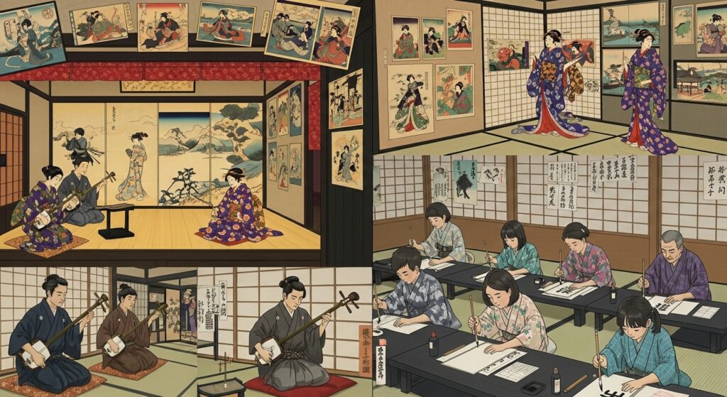 江戸幕府が260年も続いた背景には、文化の発展と庶民生活の安定がありました。戦乱のない平和な時代が続いたことで、人々は文化活動を楽しむ余裕を持てるようになりました。
