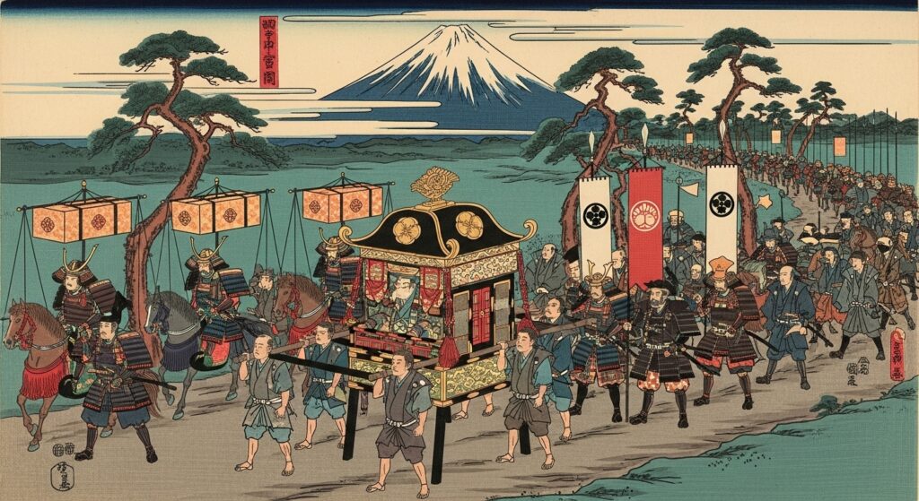 1635年に3代将軍徳川家光が制度化した参勤交代は、大名統制の決定打となりました。参勤交代とは、全国の大名が1年ごとに江戸と領地を往復し、江戸に定期的に参上する義務のことです。