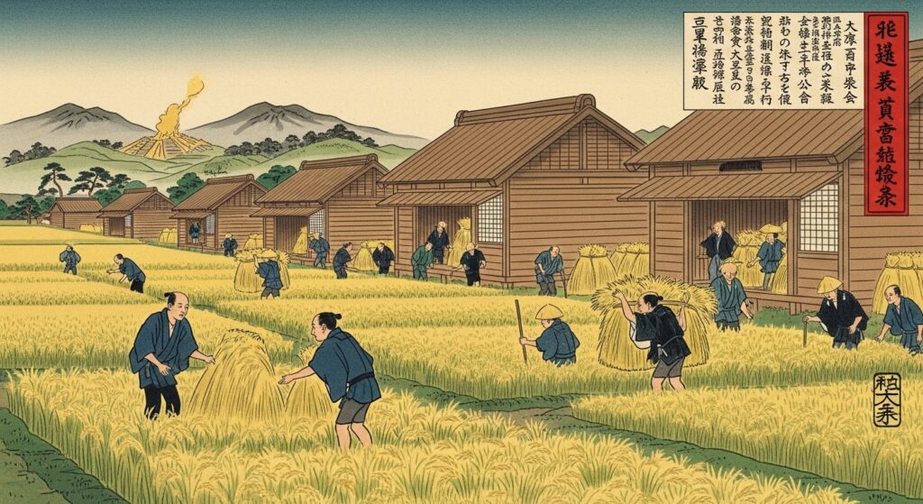 江戸時代中期以降、農業技術の向上により、生産力が増加しました。新田開発が進み、灌漑技術が改善され、肥料の使用が広まることで、米の生産量は飛躍的に増加しました。