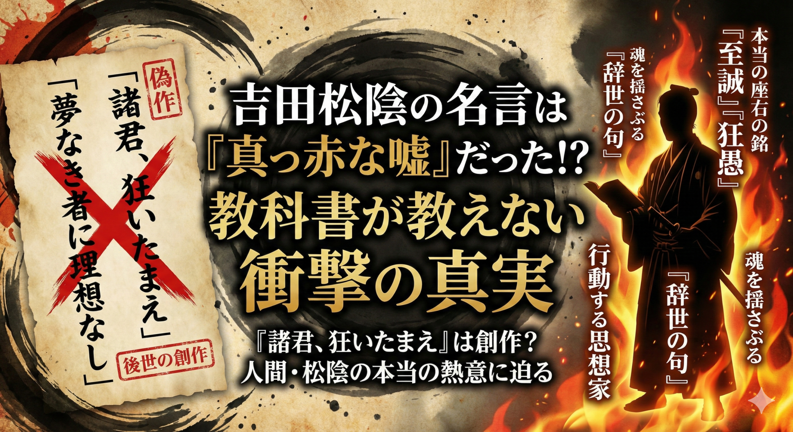 しかし、あなたが「松陰の名言」だと信じているその言葉、実は「真っ赤な嘘」あるいは「後世の創作」だとしたら、どう思いますか?