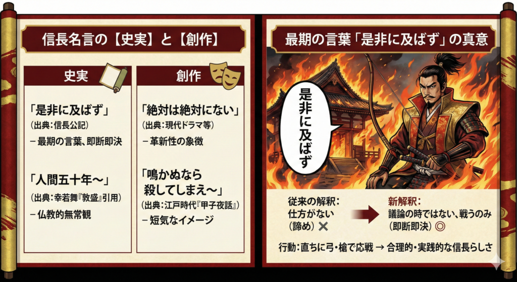 - 絶対は絶対にないは現代の創作だが信長の既成概念を破壊する革新性を象徴する言葉として機能している