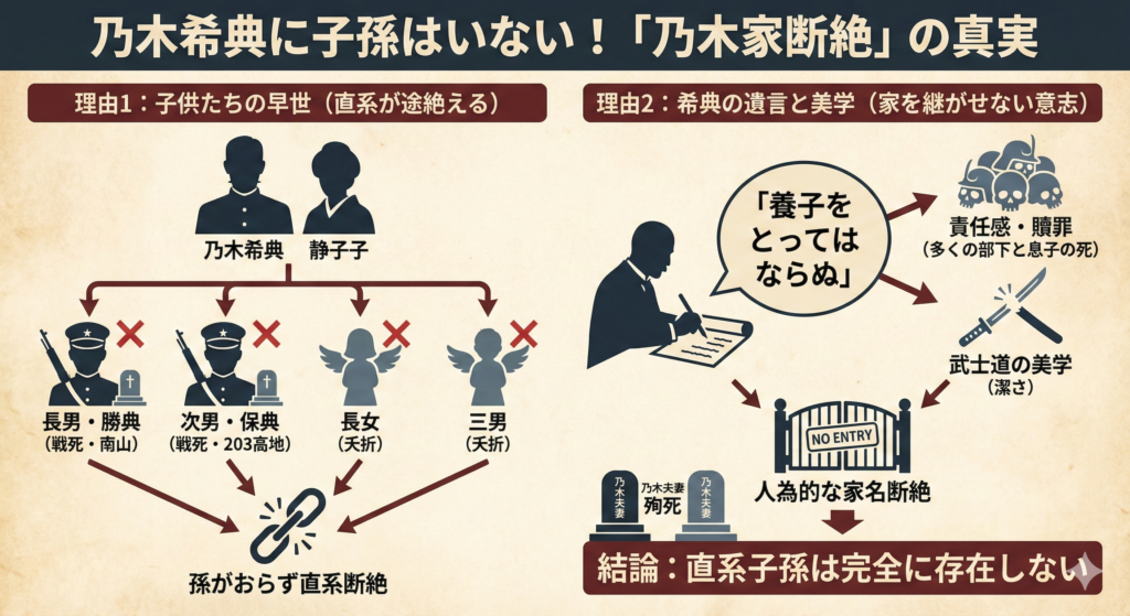 この悲劇的な事実が、後に乃木希典が「家名の断絶」を強く望む大きな理由となっていきます。