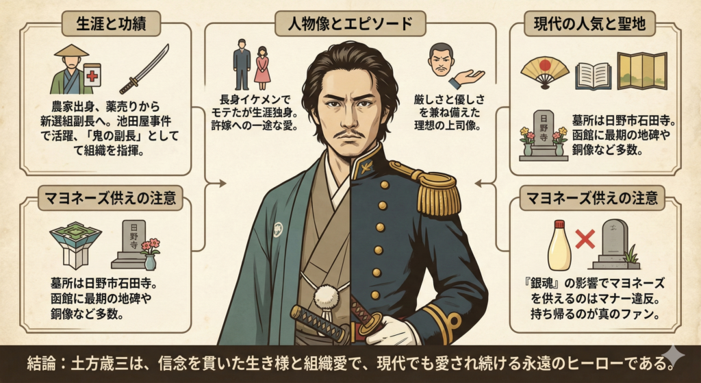 史実とフィクションが混じり合いながら、土方歳三という英雄像は今も進化し続けています。そして、これからも多くの人々に愛され続けることでしょう。