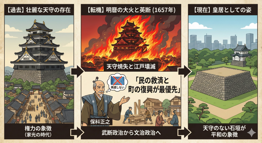 - 明暦の大火で焼失した天守が再建されなかった理由