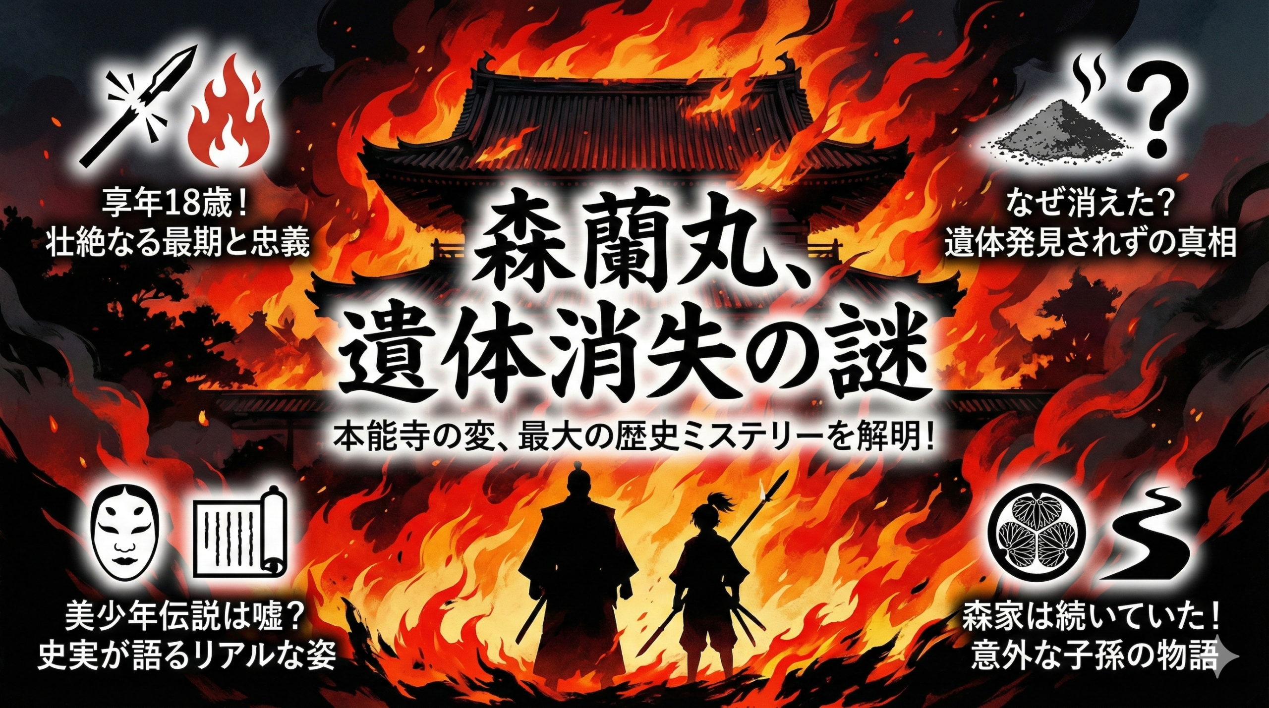 本能寺の変の激しい火災により、蘭丸の遺体は信長と共に「完全に焼失(灰化)」した可能性が高い。阿弥陀寺の清玉上人による「持ち出し・埋葬説」も存在するが、史実としての確証は低い。 - 人物像の真実: