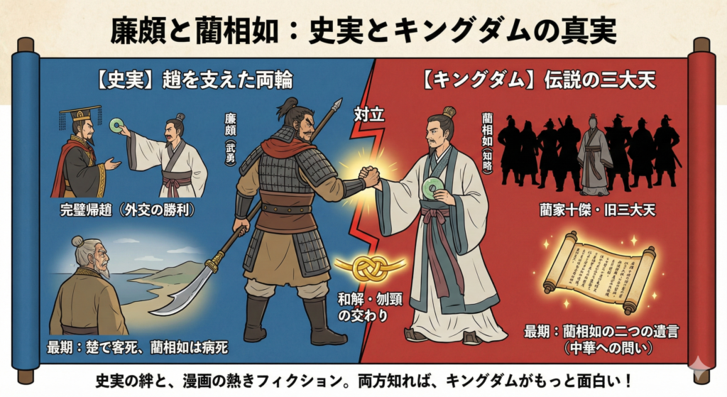 漫画『キングダム』は、この古代の英雄たちに新たな命を吹き込みました。藺相如の遺言という創作を通じて、統一という大義の先にある和解と共生というテーマを提示したのです。これは史実の二人が体現した精神を、より大きなスケールで描いたものと言えるでしょう。