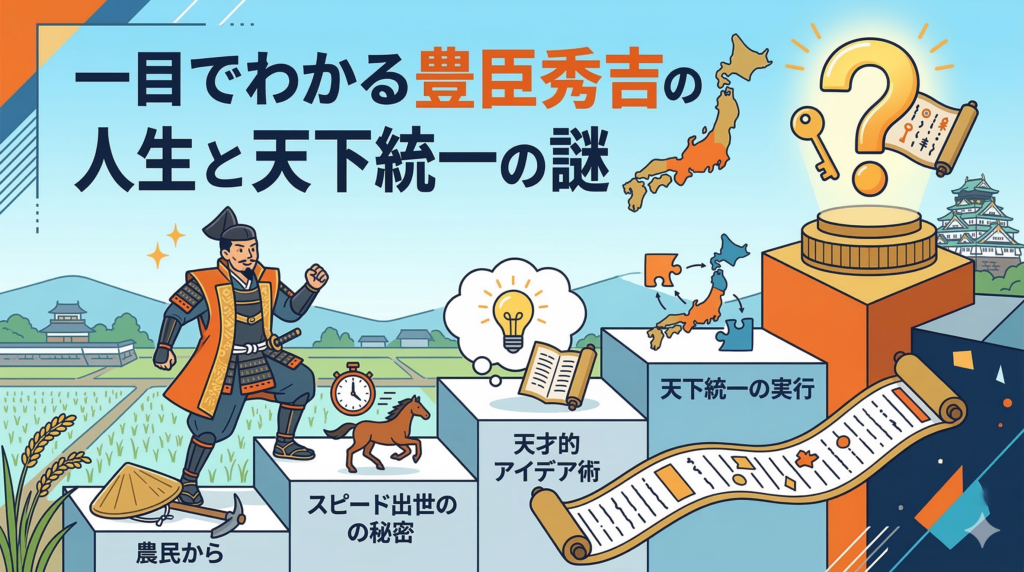 小学生でもわかる豊臣秀吉の年表!天下統一の裏に隠された謎 こんにちは!歴史の裏側を紐解くのが大好きなサイト・レキシルへようこそ。 今回は、戦国時代を代表する大スター「豊臣秀吉」について、小学生にも分かりやすく、そして歴史好きの大人も「へえ... -